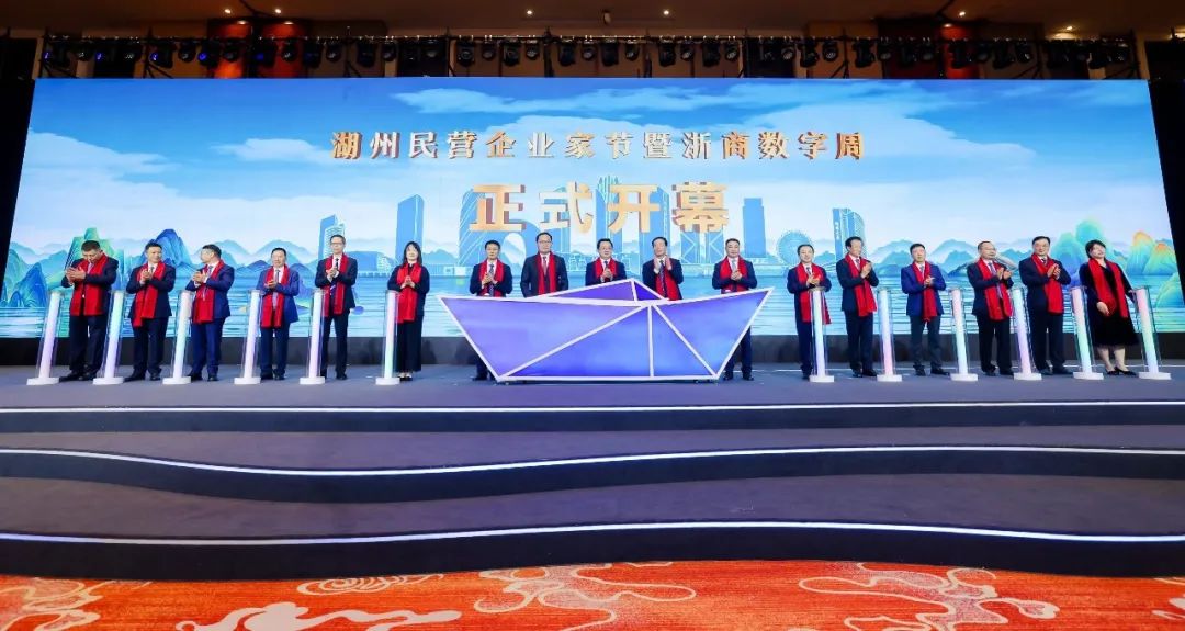 省、市有关领导和张天任董事长,以及相关企业家启动2023湖州民营企业家节暨浙商数字周开幕仪式。