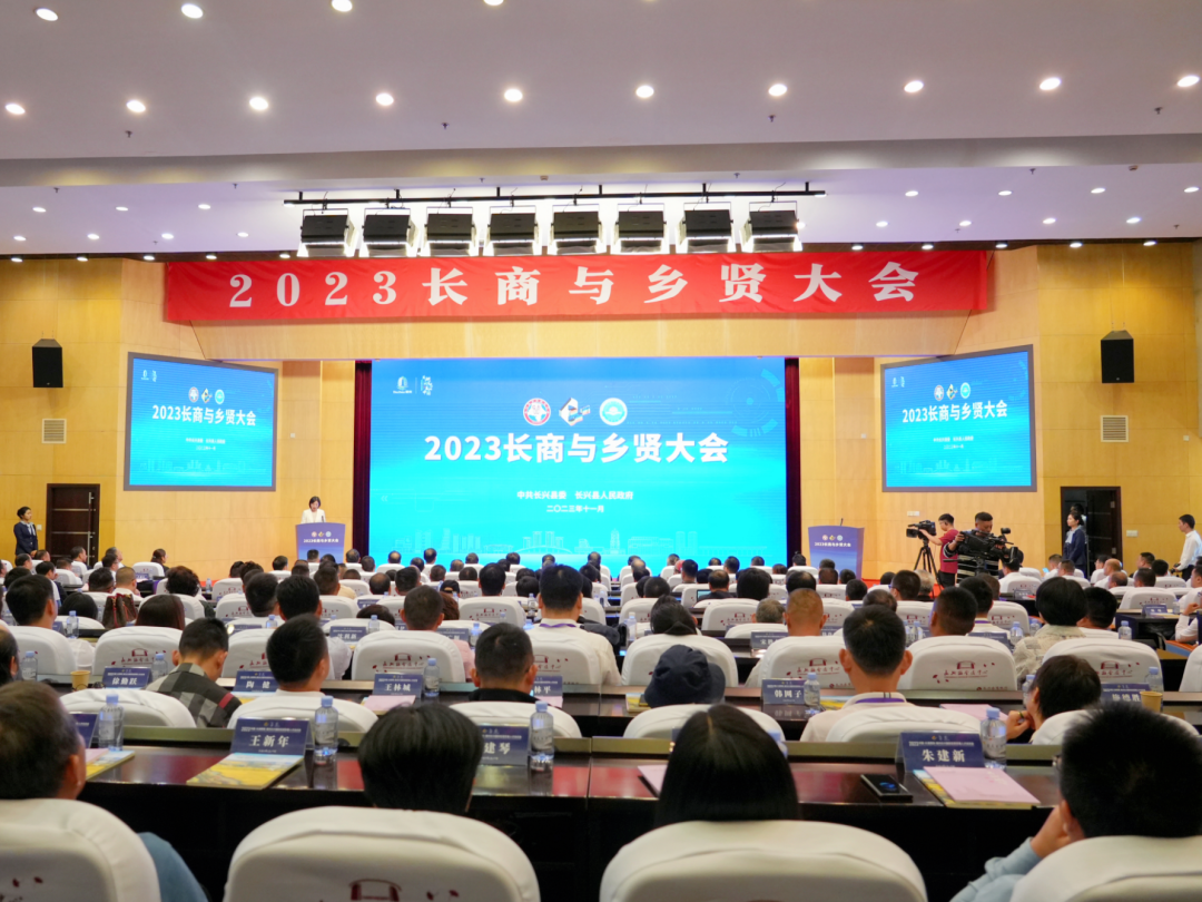 下午,2023长商与乡贤大会召开,上百位长商与乡贤嘉宾济济一堂,共话长兴发展。